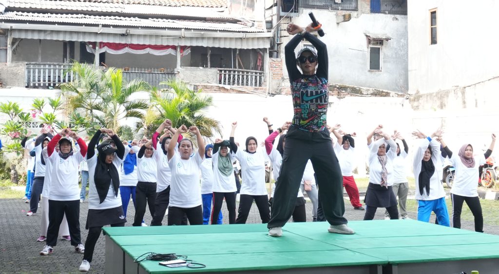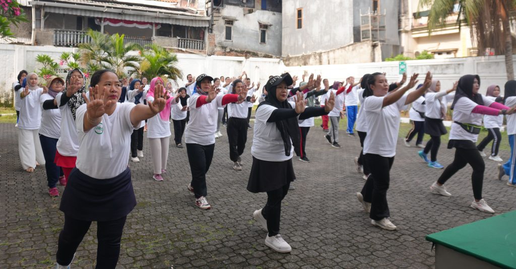 Dipandu instruktur senam berpengalaman, peserta dari PPTI, Klinik JRC maupun warga sekitar bergerak riang mengikuti suara musik. Perpaduan gerak peregangan dan relaksasi otot dipercaya ampuh memperkuat otot paru dan pernapasan. Bonusnya, paru lebih sehat, kuat dan napas lebih lega.